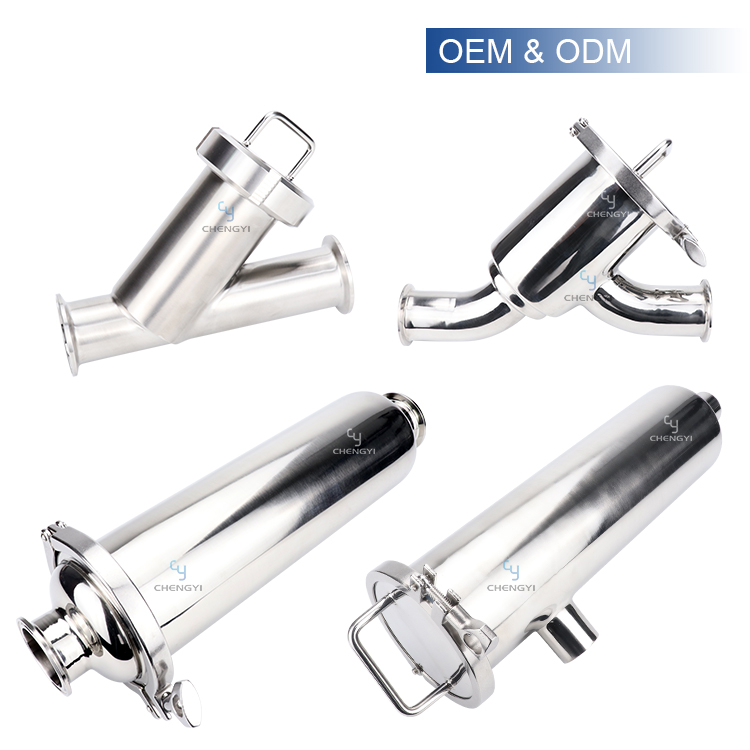 Angle type strainer is a kind of sanitary filter, mainly used for filtering liquid with solid particles, protect the pump,instruments and other devices to work properly. Because of its reasonable structured , filtration and seal ability strong,pressure loss of small and easy maintenance and other characteristics, widely used in wine, beverage, pharmaceutical, etc.