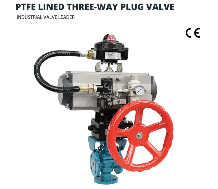 The valve body cavity, plug body and other internal components of the fluorine-lined three-way plug valve are all lining